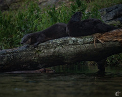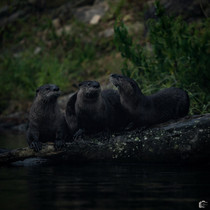 Luckily we have a little bit of a walk to our spot and our eyes have time to adjust because within two minutes of us sitting down (6:04 AM), a family of six otters had caught a fish and were having a wonderful morning on the log across the way! As the otters were having a merry time, another family started running all round us. This time it was four mink! They were so cute as they were fighting the mighty current and running about on the rocks, enjoying the muggy morning as well. Or, so we thought. Photos later revealed that, not only did the otters catch a fish, but they indeed had a mink buddy as well. Oh, what a reminder of the cycles of nature and life.